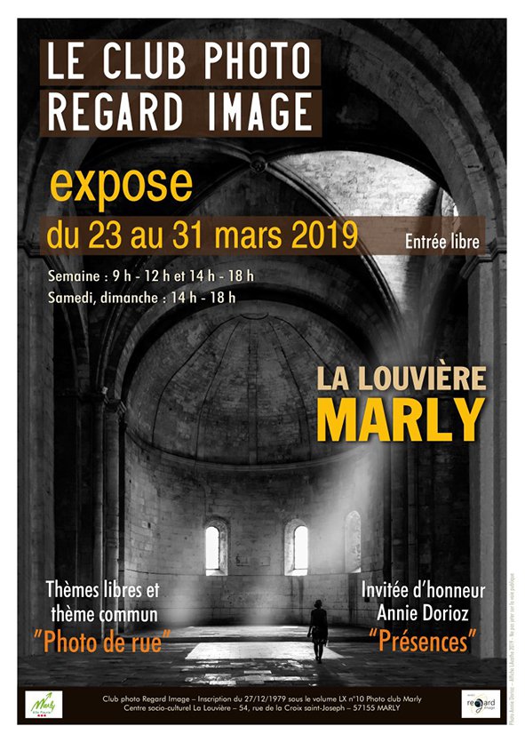 Le Club Photo REGARD IMAGE de Marly présente son exposition du 23 au 31 mars 2019, sur des thèmes libres et également un thème commun : PHOTO DE RUE.