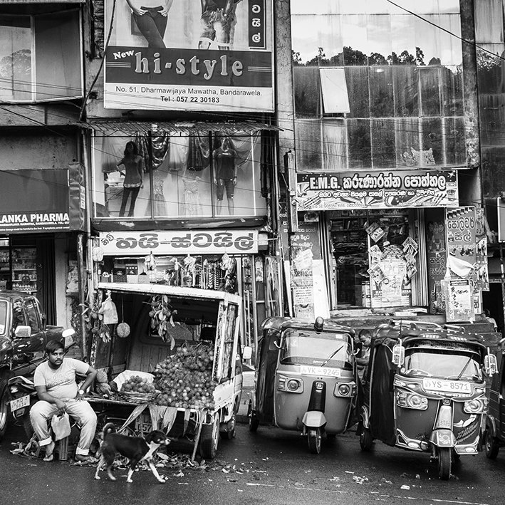 L'exposition est construite en 3 tableaux de 6 photos, retraçant le voyage imaginaire de paysans du Nord du Sri Lanka se rendant dans une ville du Sud du pays.